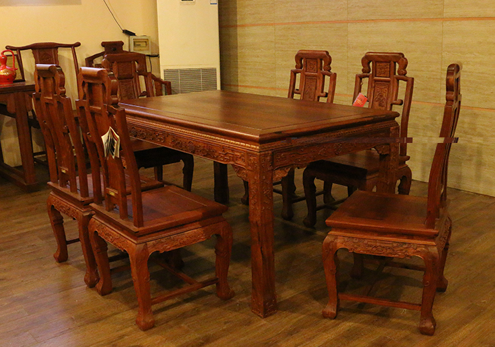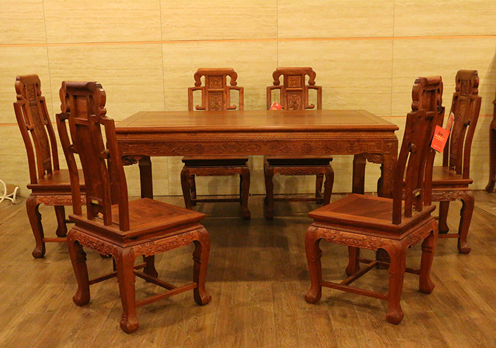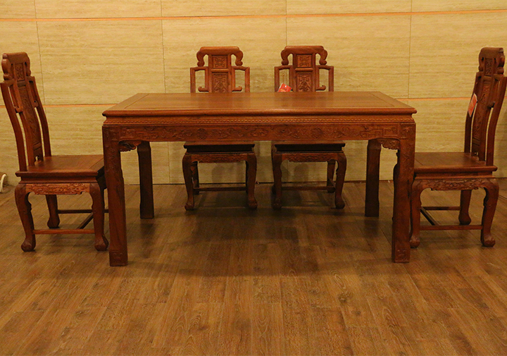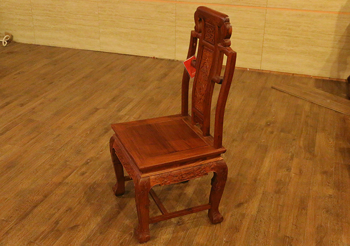 在自己實際的日常生活當中,反而凳子用的較為普遍,一是感覺使用起來比較方便隨意,二是不用像椅子那么占用地方空間。印象當中餐椅用到較多的場所,多是些高檔的餐館酒店禮堂,那一張張大大寬敞的圓形餐桌再環繞搭配上一面面靚麗白凈的椅靠背板配之的餐椅,多數帶有些歐式風格家具的韻味,頗顯莊園親切之感,有些使人困頓閑暇陶醉恬適之意。而在那些正式莊嚴的場合,譬如舉辦婚禮、生辰大壽時亦或是為了迎接遠方來賓,餐椅的選擇和搭配就更顯得重要和講究了,而今天,同樣筆者要給大家介紹的一款餐椅就是,優質緬甸花梨(學名:大果紫檀)制作的松鶴延年餐椅,一起來看看吧: