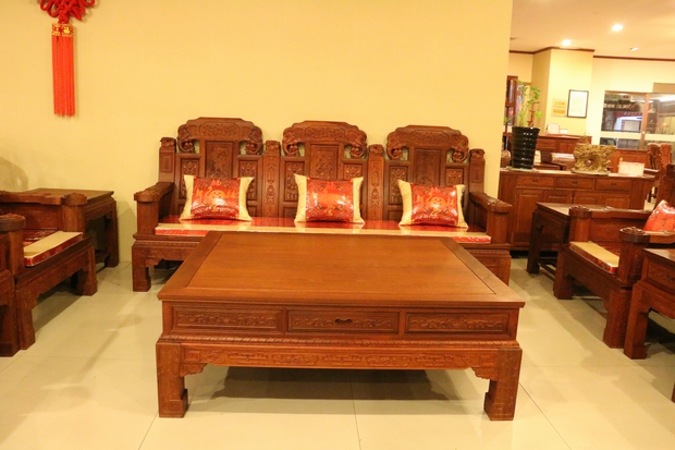 大家好,今天我們福林堂紅木要為大家介紹的這一款沙發,其名字內容較為通俗意賅——“豪華如意”。“豪華”之意:一是代表其所選用材質——緬花的珍貴,二是因為那浮華鐫秀裝點紋飾的富麗;而如意則指的是這些紋飾在其內部所承載的深厚寓意,這其中包含有喻以吉祥富貴吸財之意的大象紋、代表祥和福瑞之意的麒麟紋、還有寓帶五福象征不老不衰的梅花紋、以及擁有幸福之意的蝙蝠紋、銅錢、魚紋、銅鈴紋飾等等,它們以物喻情,這也是紅木家具不同于多數一般類普通家具的重要標志所在,可以說,它們已經不單單是一件生活中的家具品那么簡單,這其中也包含了所使用主人內在的精神世界追求和意志情感寄托之需要。