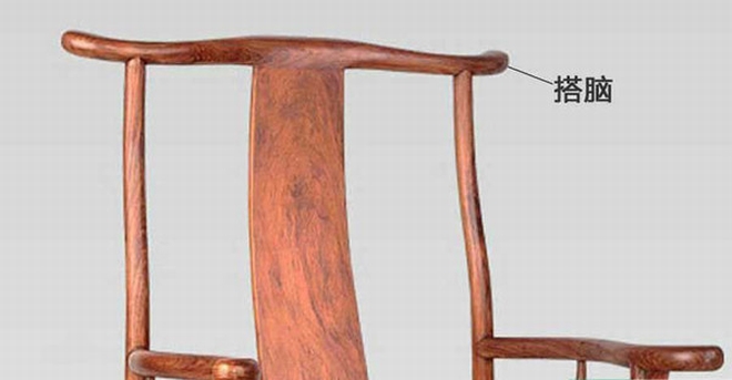 明清家具部件名稱。椅子、衣架等位于家具最上的橫梁叫“搭腦”。如明式椅子中最典型的搭腦有馬鞍式、挖油盞頭式、圓便直式、駱駝背式和天宮翅式等。造型千變萬化,但都具有流暢、挺秀的特點。